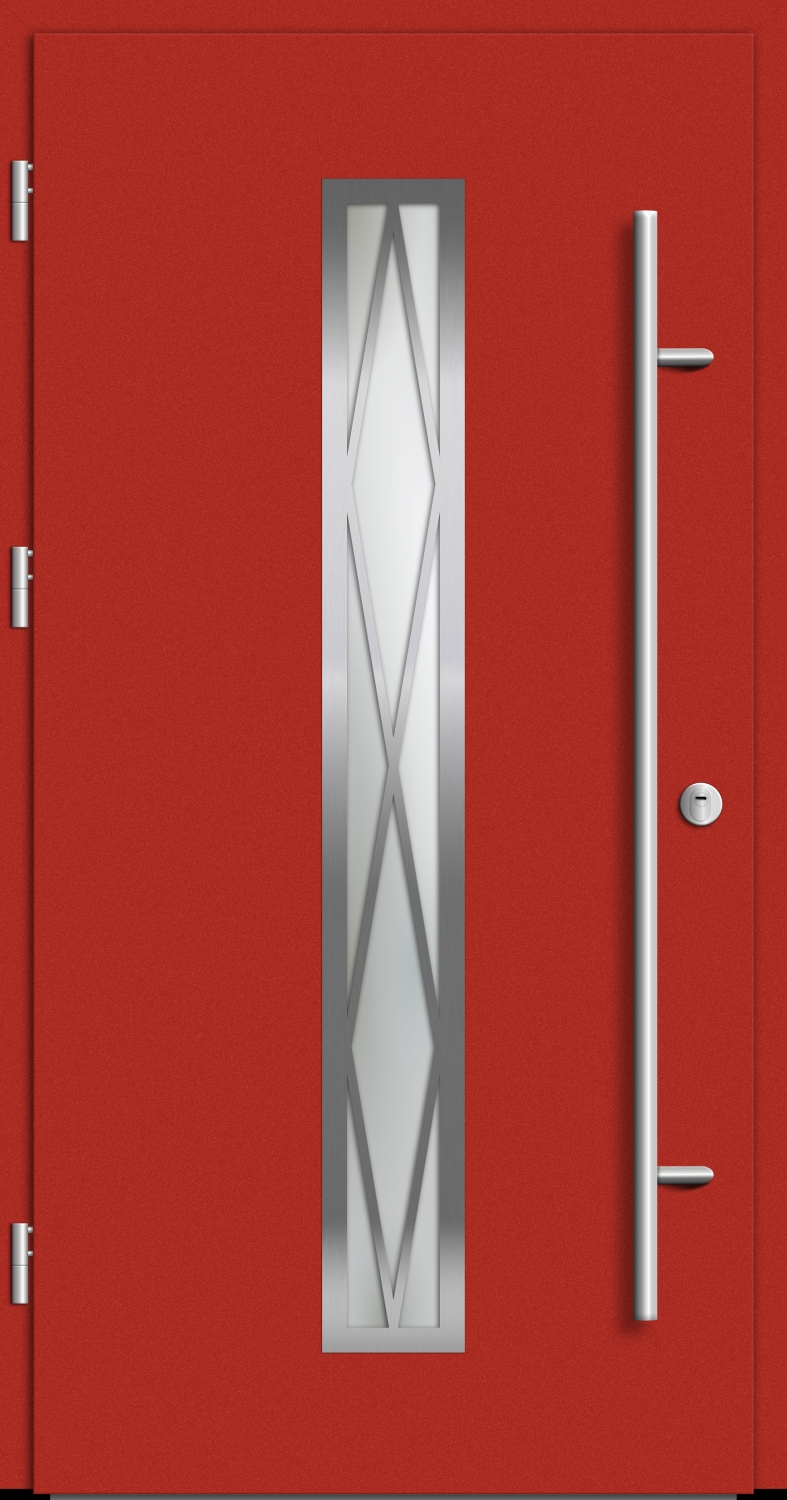 Unsere Aluminium Landhaustür "AURORA" 82 mm RC2 Diamant Sprossenfelder erstrahlt in einem modernen und zeitlosen Design. Die ALU Landhaustür "AURORA" 82 mm RC2 Diamant Sprossenfelder steht für Geradlinigkeit, Widerstandsfähigkeit und einen sicheren Hauseingang. Zudem überzeugt sie durch Ihre robuste und flügelüberdeckende Bauweise mit Pflegeleichtigkeit. In einem zeitlosen und modernem Verkehrsweiß, Anthrazitgrau, Silbergrau, Moosgrün, Beigegrau, Saphirblau, Anthrazitgrau/Eisenglimmer, Tiefschwarz oder Feuerrot gefertigt, findet sich hohen Zuspruch bei Bauherren. Eine Fertigung im Holzdekor Golden Oak, Nussbaum, Winchester oder Turner Oak macht die Tür ebenso für klassische Hauseingänge attraktiv. Bei diesem Modell sind Edelstahl-Applikationen in Diamanten-Muster auf die Verglasung aufgesetzt. Bei der Verriegelung setzt das Modell auf Sicherheit und bietet die Varianten 5-fach Schwenkhakenverriegelung (Winkhaus hookLock M) oder 3-fach Bolzenverriegelung mit Automatikschloss, mechanisch (G-U Secury Automatic) mit Aushebelsicherung an. Unsere Haustür AURORA können Sie in folgenden Maßen bestellen: 88 cm x 208 cm, 100 cm x 200 cm, 100 cm x 210 cm, 110 cm x 210 cm oder 110 cm x 220 cm. Bestellen Sie Ihre Türen noch heute zu günstigen sowie fairen Konditionen und profitieren Sie von einem angenehmen Wohngefühl das obendrein noch Energiekosten einspart dank einer effizienten Wärmedämmung!
