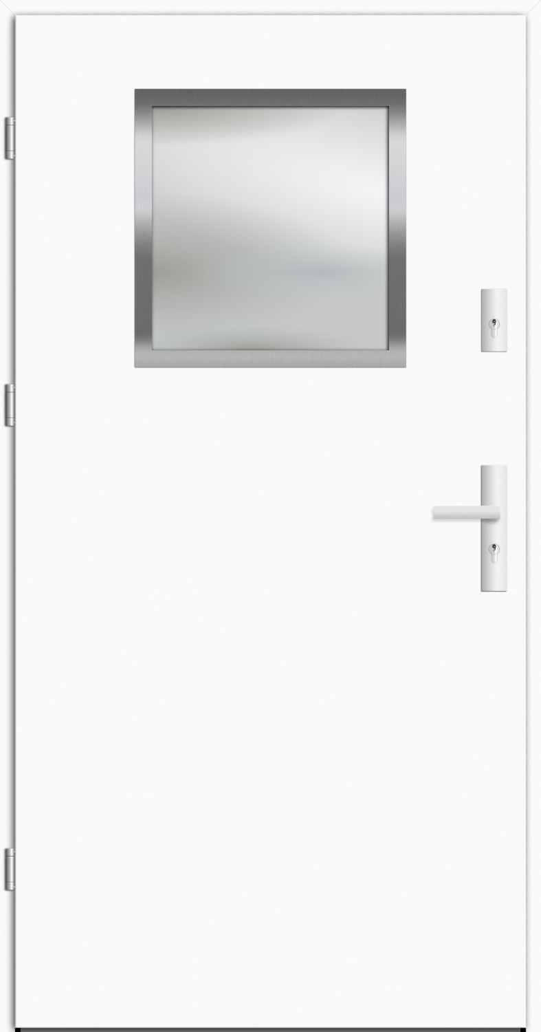 Sie suchen eine schlichte Tür für Garage, Hobbyraum oder Schuppen? Unser Modell Aluminium-Stahl Nebeneingangstür "AKARI" 68 mm ist genau die richtige Tür für Sie! In einem zeitlosen und modernem Verkehrsweiß oder Anthrazitgrau/Eisenglimmer oder einem edlen Holzdekor Golden Oak oder Nussbaum gefertigt, findet sie hohen Zuspruch und fügt sich harmonisch in jeden Nebeneingang ein. Die sonst eher schlichte Türfüllung, wird durch eine dezente Verglasung in Satinato (Milchglas) aufgelockert und spendet zusätzliches Tageslicht im Eingangsbereich. Mit einer Öffnungsrichtung nach außen oder innen, können Sie genau bestimmen, welche bauliche Anforderung in Ihrem Fall zutrifft. Bei der Verriegelung handelt es sich um eine 2x Drei-Bolzen-Tresor-Verriegelung. Sie können sich das Modell AKARI in 88 cm x 205 cm, 90 cm x 207 cm, 90 cm x 200 cm, 100 cm x 200 cm, 100 cm x 207 cm oder 110 cm x 207 cm bestellen und somit die optimale Ausführung der Tür für Ihren Seiteneingang bestimmen!