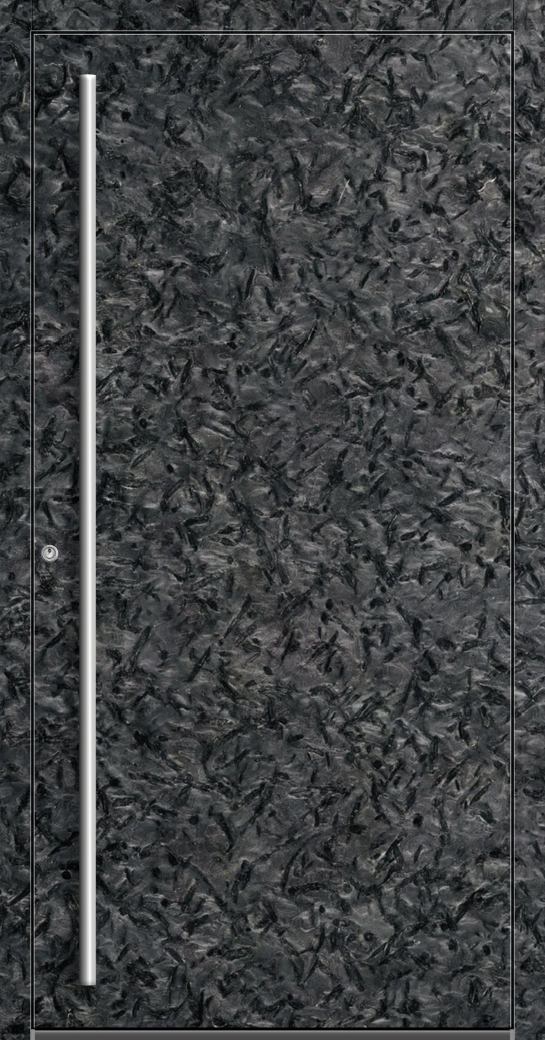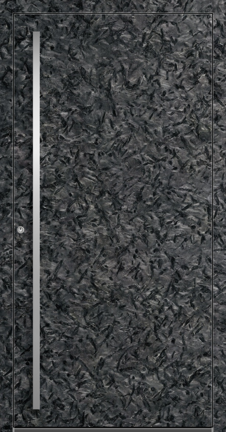 Erleben Sie die Faszination echter Steinhaustüren – gefertigt aus hochwertigem Aluminium mit einer gebürsteten Oberfläche aus edlem Naturstein Matrix. Die Textur erinnert an Schiefer, strahlt Ruhe und Eleganz aus. Unser Modell Aluminium-Stein Haustür "VALERIA" 83 mm RC2 MATRIX wird individuell und zentimetergenau nach Maß gefertigt und vereint modernste Pirnar-Technologie mit dem PREMIUM CarbonCore-Profilsystem und handwerklicher Perfektion Made in Germany. Der integrierte Obertürschließer sorgt für eine gleichmäßige Schließbewegung und erhöht die Langlebigkeit der Beschläge. Die Kombination aus robuster Aluminiumkonstruktion und natürlicher Steinveredelung schafft eine Haustür, die in Design, Qualität und Beständigkeit Maßstäbe setzt. Dank der innovativen Mehrkammer-Bauweise und hochwertigen Dichtungssysteme bietet sie zudem eine erstklassige Wärmedämmung mit 0,75 W/m²K und trägt so aktiv zur Energieeffizienz Ihres Hauses bei. Wählen Sie zwischen einer beidseitigen Steinverkleidung oder einer Variante mit Naturstein nur auf der Außenseite, während für die Innenseite verschiedene RAL-Farben zur Auswahl stehen. Der Naturstein Matrix verleiht jeder Tür eine charakteristische Tiefe und Maserung, die sich sowohl in moderne als auch klassische Architektur harmonisch einfügt. Die Präzise Fertigung sorgt für perfekte Linien, flächenbündiges Design und eine nahtlose Oberfläche. Ein massiver Stoßgriff ist inklusive und unterstreicht den eleganten Charakter, verdeckt liegende Bänder sorgen für eine klare, puristische Optik. Optional ist die Tür mit Fingerscanner oder APP-Steuerung erhältlich – für modernen Komfort und Smart-Home-Kompatibilität. Die Oberfläche ist extrem widerstandsfähig gegen UV-Strahlung, Kratzer und Witterungseinflüsse und bleibt dauerhaft makellos – ohne Nachversiegelung oder Pflegeaufwand. Für ausgezeichneten Einbruchschutz stehen verschiedene Verriegelungen zur Wahl: 3-fach oder 5-fach Schwenkhakenverriegelung, wahlweise mechanisch oder elektrisch mit Automatikschloss. Jede Steinhaustür ist ein Unikat – mit Liebe zum Detail gefertigt und geschaffen für einen exklusiven, langlebigen Eingangsbereich.