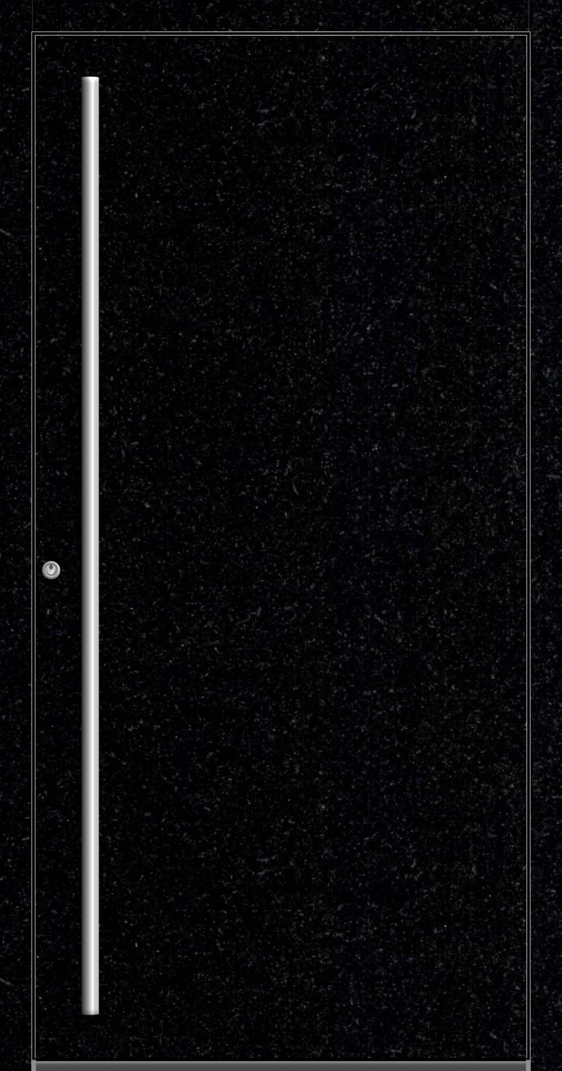 Erleben Sie die Faszination echter Steinhaustüren – gefertigt aus hochwertigem Aluminium mit einer polierten Oberfläche aus edlem Naturstein Nero Assoluto. Unser Modell Aluminium-Stein Haustür "VALERIA" 83 mm RC2 NERO ASSOLUTO wird individuell und zentimetergenau nach Maß gefertigt und vereint modernste Pirnar-Technologie mit dem PREMIUM CarbonCore-Profilsystem und handwerklicher Perfektion Made in Germany. Die Kombination aus robuster Aluminiumkonstruktion und natürlicher Steinveredelung schafft eine Haustür, die in Design, Qualität und Beständigkeit Maßstäbe setzt. Der integrierte Obertürschließer sorgt für eine gleichmäßige Schließbewegung und erhöht die Langlebigkeit der Beschläge. Dank der innovativen Mehrkammer-Bauweise und hochwertigen Dichtungssysteme bietet sie zudem eine erstklassige Wärmedämmung mit 0,75 W/m²K und trägt so aktiv zur Energieeffizienz Ihres Hauses bei. Wählen Sie zwischen einer beidseitigen Steinverkleidung oder einer Variante mit Naturstein nur auf der Außenseite, während für die Innenseite verschiedene RAL-Farben zur Auswahl stehen. Der Naturstein Nero Assoluto verleiht jeder Tür eine charakteristische Tiefe und Maserung, die sich sowohl in moderne als auch klassische Architektur harmonisch einfügt. Die Präzise Fertigung sorgt für perfekte Linien, flächenbündiges Design und eine nahtlose Oberfläche. Ein massiver Stoßgriff ist inklusive und unterstreicht den eleganten Charakter, verdeckt liegende Bänder sorgen für eine klare, puristische Optik. Optional ist die Tür mit Fingerscanner oder APP-Steuerung erhältlich – für modernen Komfort und Smart-Home-Kompatibilität. Die Oberfläche ist extrem widerstandsfähig gegen UV-Strahlung, Kratzer und Witterungseinflüsse und bleibt dauerhaft makellos – ohne Nachversiegelung oder Pflegeaufwand. Für ausgezeichneten Einbruchschutz stehen verschiedene Verriegelungen zur Wahl: 3-fach oder 5-fach Schwenkhakenverriegelung, wahlweise mechanisch oder elektrisch mit Automatikschloss. Jede Steinhaustür ist ein Unikat – mit Liebe zum Detail gefertigt und geschaffen für einen exklusiven, langlebigen Eingangsbereich.