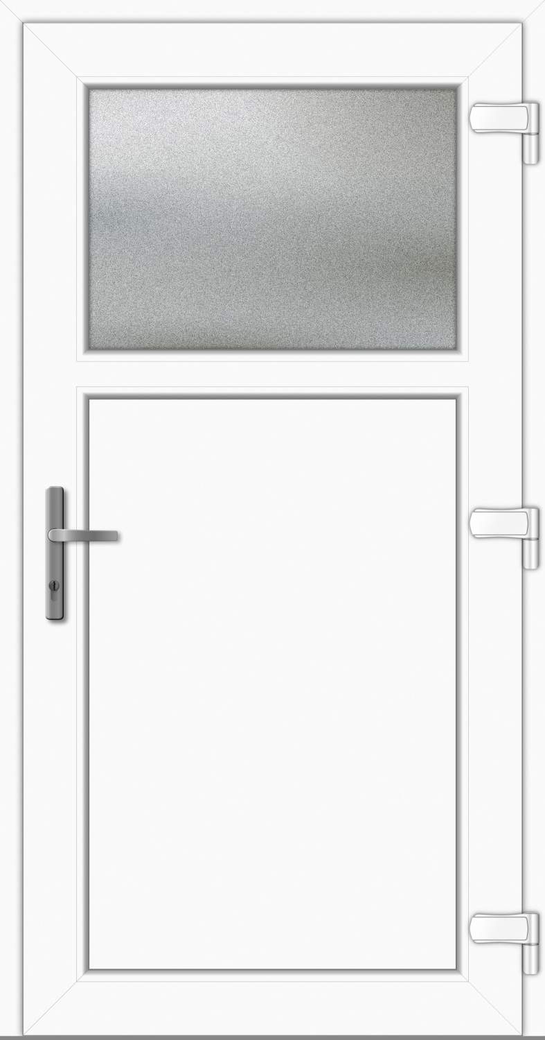 | Aufbau Türflügel | Türflügel mit beidseitiger Einsatzfüllung, umlaufende Stahlverstärkung im Inneren des Füllungsrahmen, 24 mm wärmegedämmte PVC-Sandwichfüllung (hochwertiger XPS-Kern) |