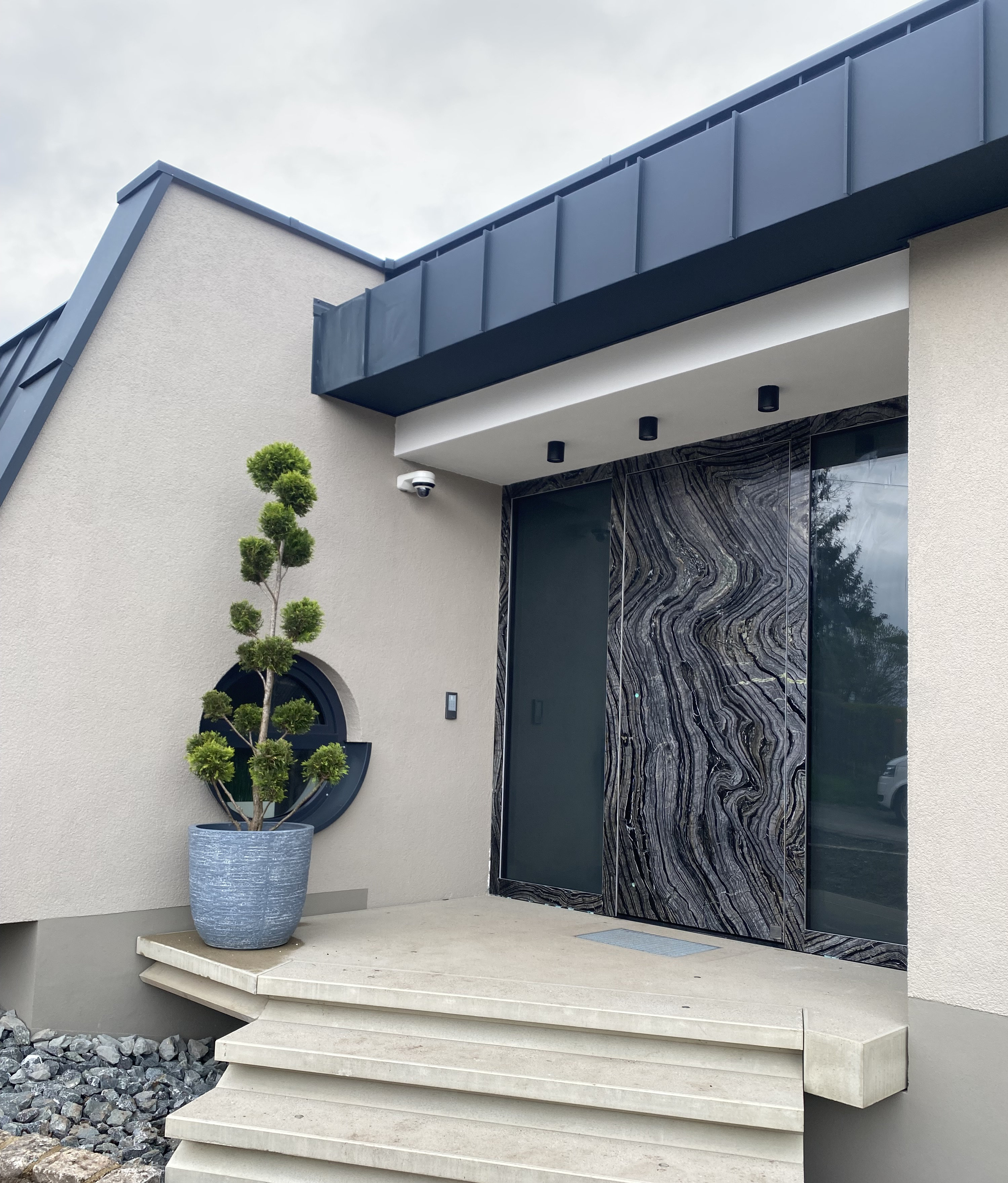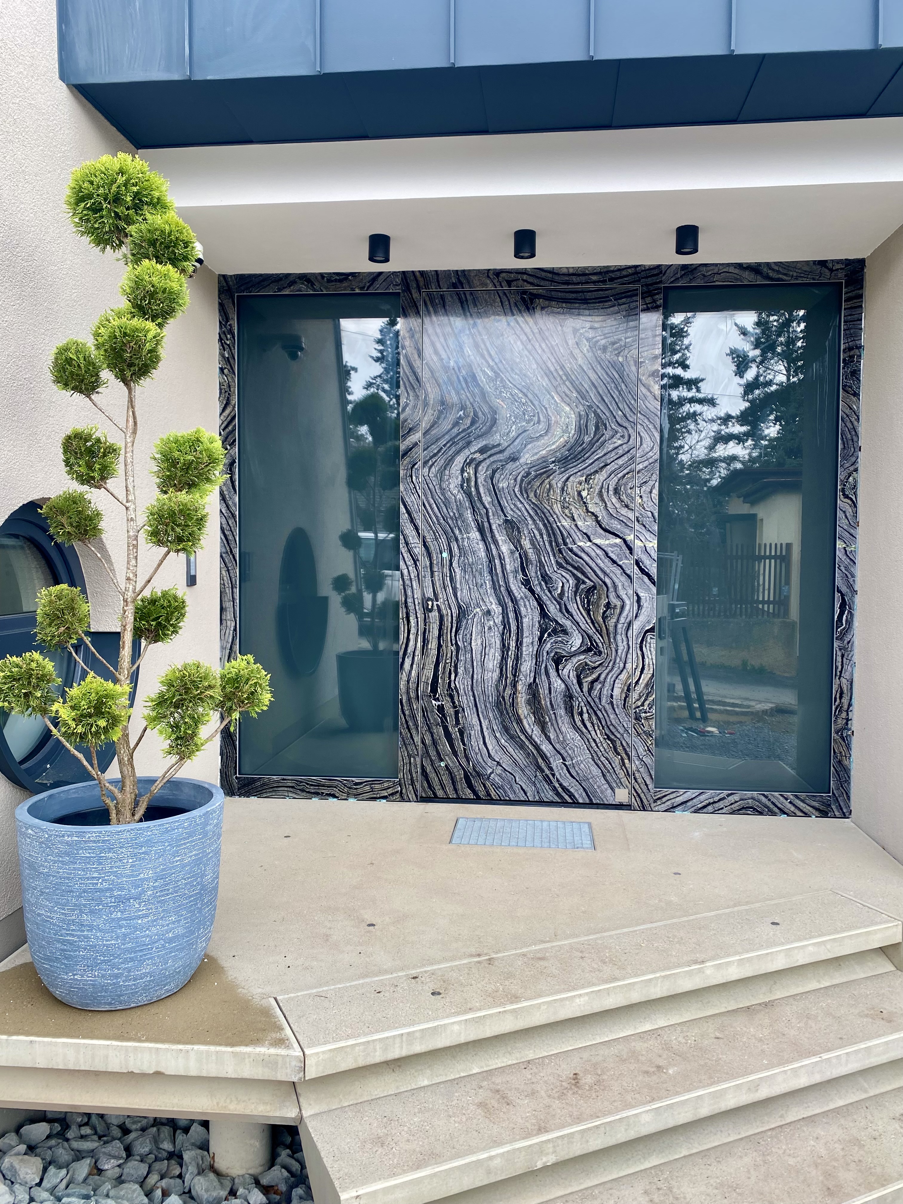 Luxus Haustür mit Naturstein Silver Wave